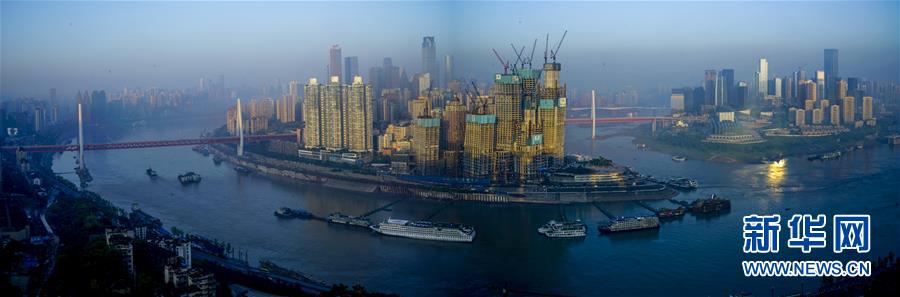 晨曦中的重慶主城區(qū)(拼接照片,2017年5月4日攝)。新華社記者 劉潺 攝