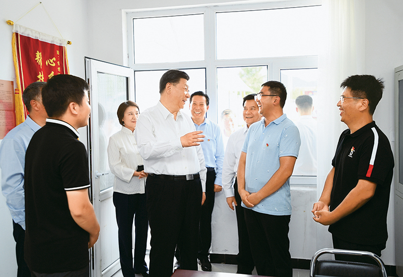 2019年7月15日至16日,中共中央總書記、國家主席、中央軍委主席習近平在內蒙古考察并指導開展“不忘初心、牢記使命”主題教育。這是15日下午,習近平在赤峰市喀喇沁旗河南街道馬鞍山村黨群服務中心了解基層黨建、民族團結和鄉(xiāng)村振興情況。 新華社記者 謝環(huán)馳/攝