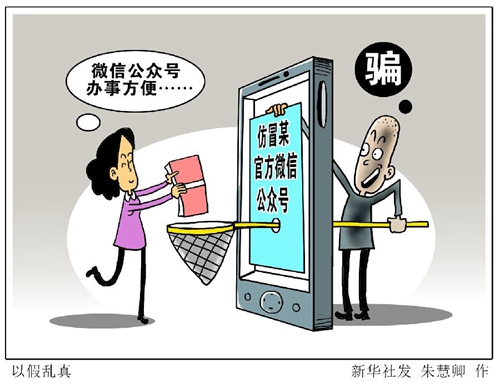 看病、開(kāi)卡、辦事,上微信公眾號(hào)預(yù)約一下,近年來(lái),越來(lái)越多的人習(xí)慣在微信公眾號(hào)上處理事務(wù)。“新華視點(diǎn)”記者調(diào)查發(fā)現(xiàn),騙子們?nèi)缃耖_(kāi)始利用仿冒官方微信公眾號(hào)進(jìn)行詐騙,有的通過(guò)取“高仿名”冒充正規(guī)機(jī)構(gòu),有的通過(guò)造假、借用他人工商執(zhí)照、法人信息注冊(cè)微信公眾號(hào)實(shí)施詐騙。