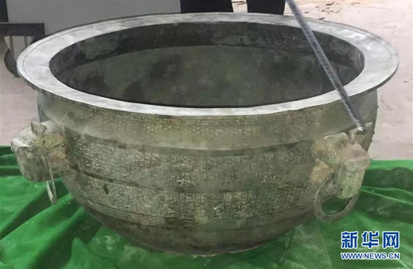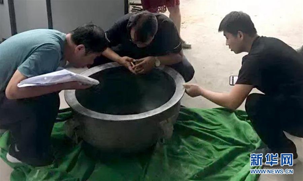 據(jù)了解,“鑒盆”為西周時(shí)期一種體積較大的多功能容器。此次查獲的“鑒盆”直徑約70厘米,專家初步鑒定為國(guó)家二級(jí)文物。