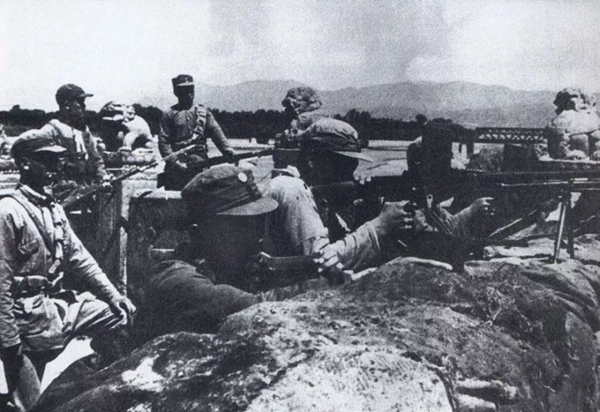 ↑1937年7月7日,駐華日軍發(fā)動(dòng)“七七事變”(又稱“盧溝橋事變”),開(kāi)始全面侵華。這是中國(guó)軍隊(duì)在盧溝橋抗擊日軍的進(jìn)攻。新華社發(fā)