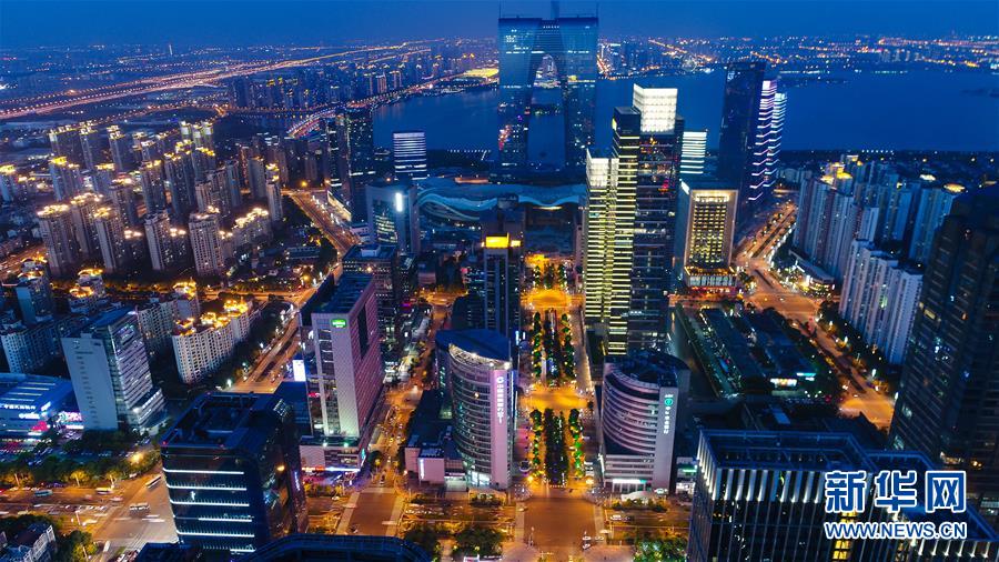 蘇州工業(yè)園區(qū)夜景(2017年5月9日無人機拍攝)。新華社記者 李響 攝