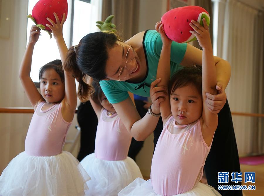 在宿遷市洋河新區(qū)新城名苑社區(qū)活動中心,小朋友們在老師的指導下練習舞蹈動作(7月15日攝)。新華社記者 季春鵬 攝