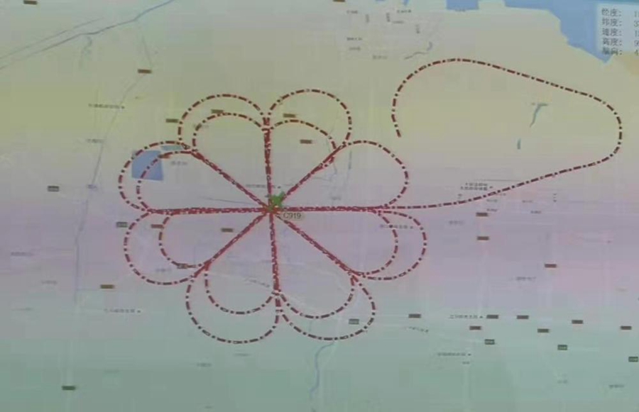 試飛數(shù)據(jù)顯示,7日下午14點06分,飛機離開東營勝利機場,從不同方向飛過一個點,空中飛行了近4個小時。下午18點左右,飛機降落回東營勝利機場。