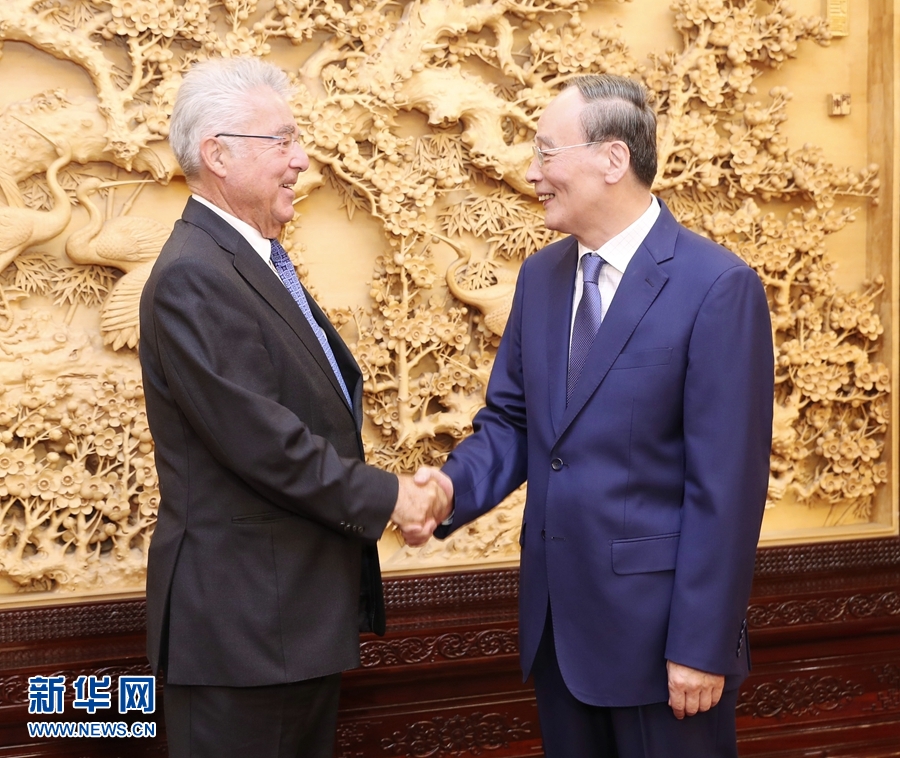 9月11日,國(guó)家副主席王岐山在北京中南海會(huì)見(jiàn)奧地利中國(guó)友好協(xié)會(huì)主席、前總統(tǒng)菲舍爾。 新華社記者 姚大偉 攝