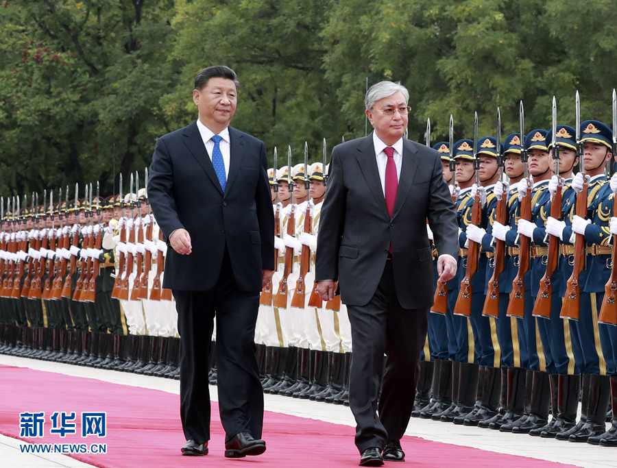 9月11日,國(guó)家主席習(xí)近平在北京人民大會(huì)堂同哈薩克斯坦總統(tǒng)托卡耶夫舉行會(huì)談。這是會(huì)談前,習(xí)近平在人民大會(huì)堂東門外廣場(chǎng)為托卡耶夫舉行歡迎儀式。 新華社記者 黃敬文 攝