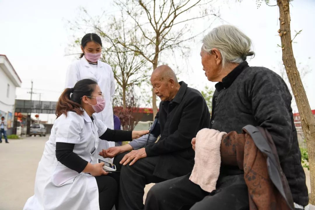 醫(yī)護(hù)人員在巨鹿縣南大韓村菘樂敬老院為老人測量血壓 牟宇 攝