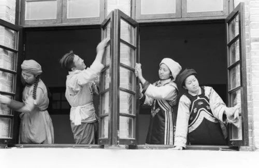 1952年7月31日,西南民族學(xué)院的師生開展校舍和個人清潔衛(wèi)生活動(新華社記者孫忠靖 攝)