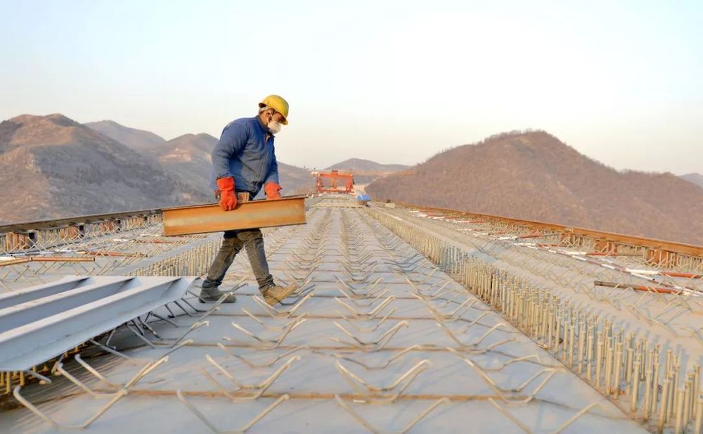 2018年1月12日,河北交投集團(tuán)建設(shè)工人在太行山高速公路河北沙河三號(hào)橋施工。(新華社記者朱旭東 攝)