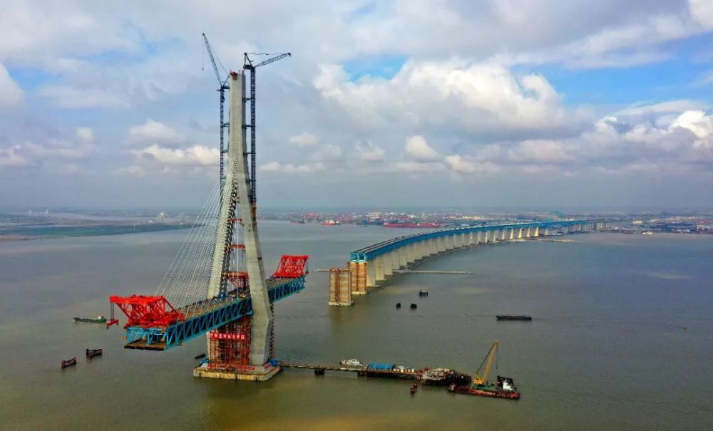 2018年12月20日,中鐵大橋局滬通長江大橋項(xiàng)目部使用“水上大力士”浮吊船吊裝了兩臺(tái)1800噸架梁吊機(jī)。(圖片來源:南通市鐵路辦)