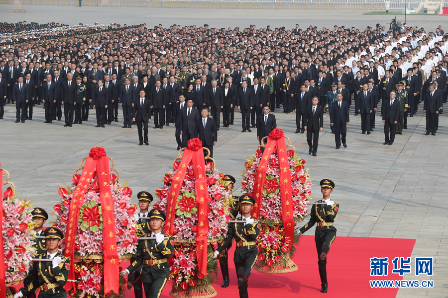 9月30日上午,習(xí)近平、李克強(qiáng)、栗戰(zhàn)書(shū)、汪洋、王滬寧、趙樂(lè)際、韓正、王岐山等黨和國(guó)家領(lǐng)導(dǎo)人來(lái)到北京天安門(mén)廣場(chǎng),出席烈士紀(jì)念日向人民英雄敬獻(xiàn)花籃儀式。 新華社記者 丁海濤 攝