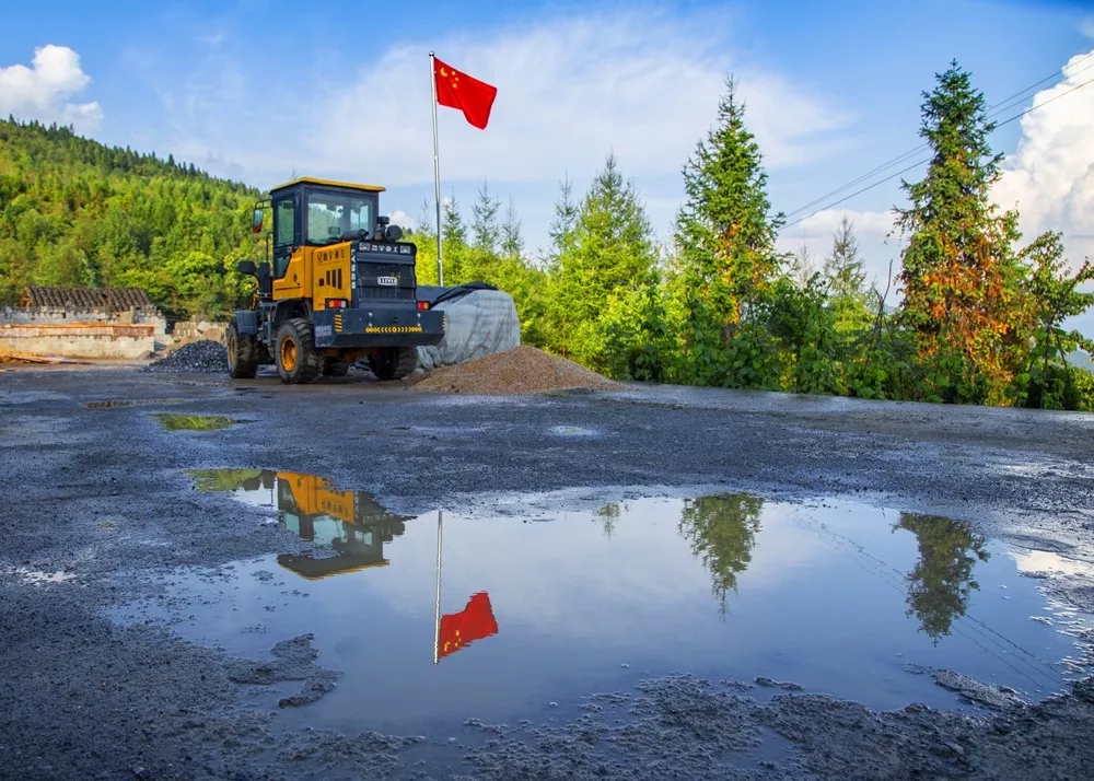 2019年9月27日,湖北利川。文化廣場建設(shè)工地,紅旗高高飄揚,以這種特有的喜慶方式迎接國慶。作者:利川六哥