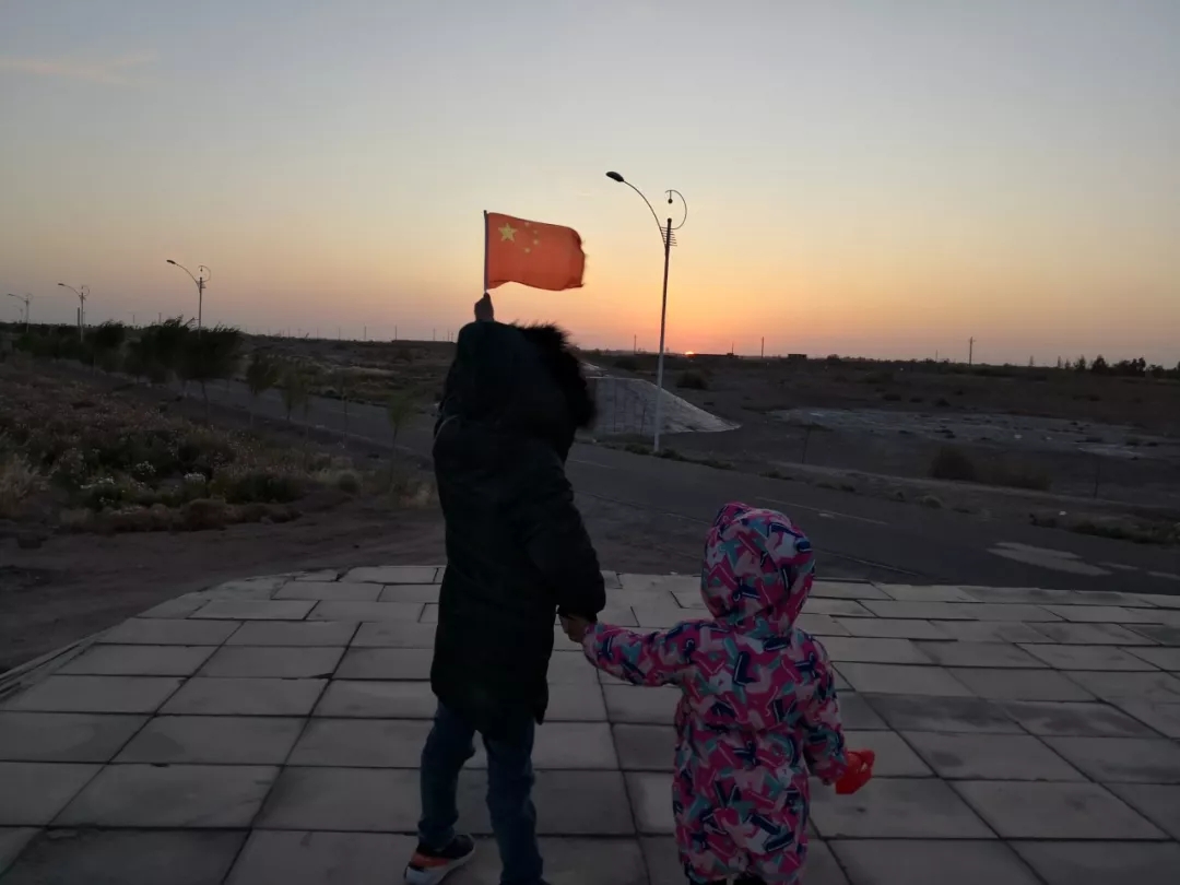2019年10月1日,酒泉衛(wèi)星發(fā)射中心。今天是國慶節(jié),孩子們一起看日出。作者:黃建敏