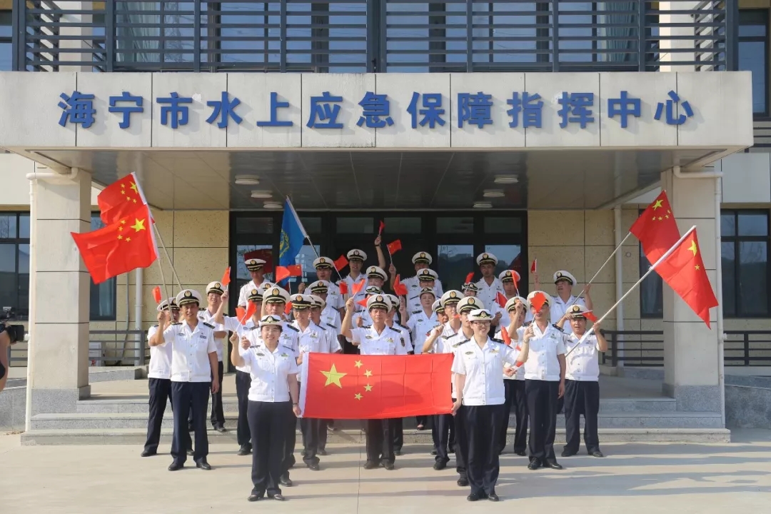 2019年9月27日,浙江海寧。海寧港航人舉行“看水運成就展 向國旗敬禮 慶祝新中國成立70周年”主題活動,合唱《我和我的祖國》。作者:柏杜人