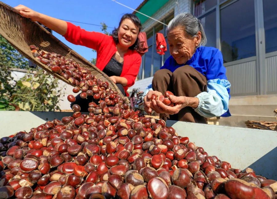 8月23日,河北遵化。侯家寨鄉(xiāng)大屯村農(nóng)民懷著喜悅的心情收獲板栗。作者:天下人