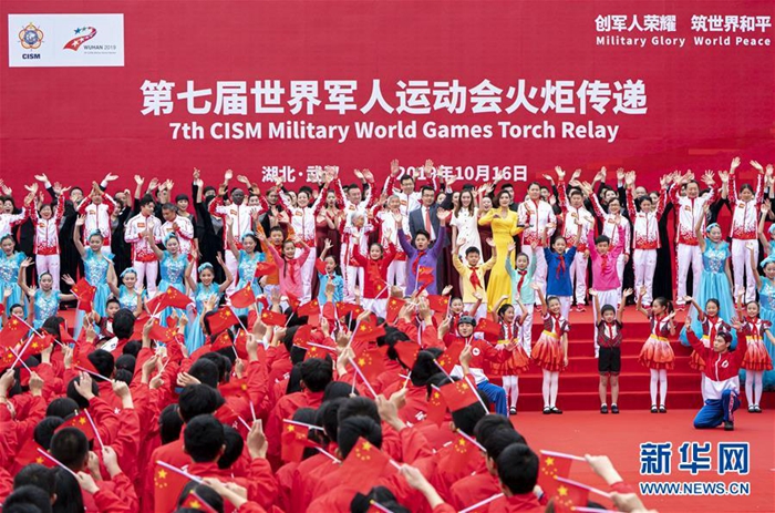 10月16日,第七屆世界軍人運動會火炬?zhèn)鬟f活動在武漢東湖綠道舉行。這是第七屆世界軍人運動會火炬?zhèn)鬟f活動現(xiàn)場(10月16日攝)。新華社記者 肖藝九 攝