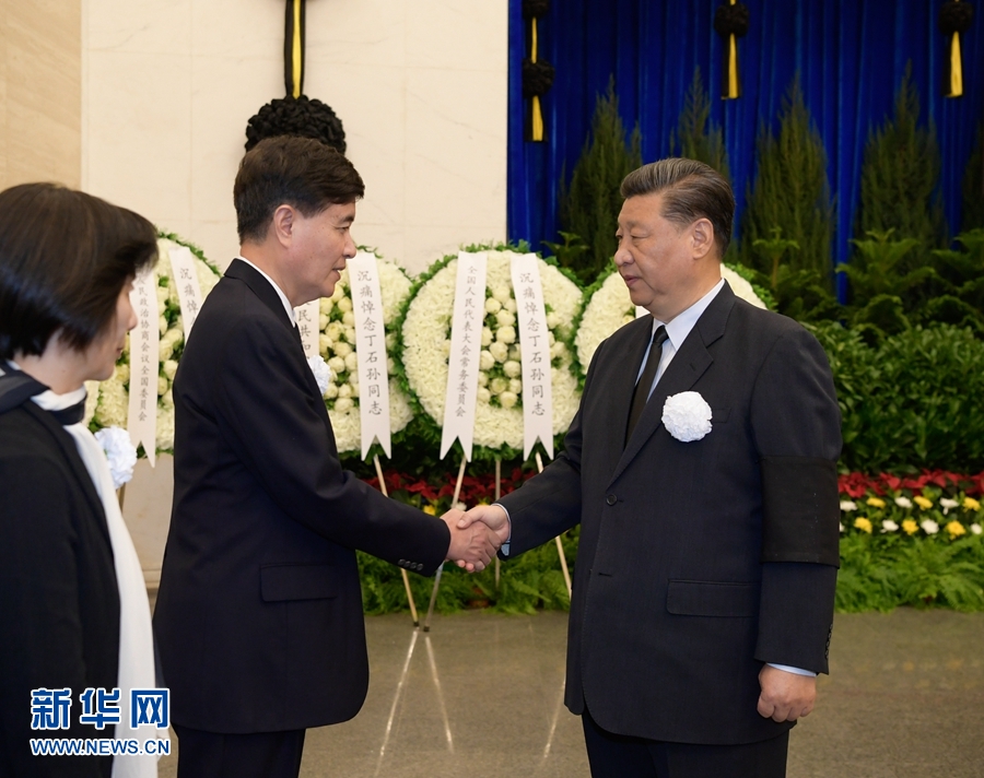 上午9時(shí)45分許,習(xí)近平、李克強(qiáng)、栗戰(zhàn)書、汪洋、王滬寧、趙樂(lè)際、韓正、王岐山等,在哀樂(lè)聲中緩步來(lái)到丁石孫同志的遺體前肅立默哀,向丁石孫同志的遺體三鞠躬,并與丁石孫同志親屬一一握手,表示慰問(wèn)。
