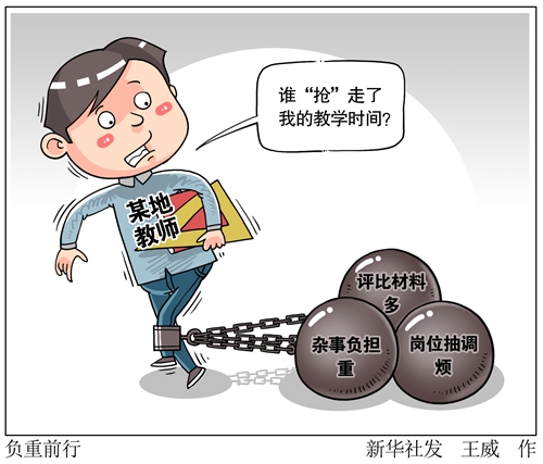 今年9月,中央深改委審議通過(guò)《關(guān)于減輕中小學(xué)教師負(fù)擔(dān)進(jìn)一步營(yíng)造教育教學(xué)良好環(huán)境的若干意見(jiàn)》,要求讓中小學(xué)教師潛心教書、靜心育人。記者走訪發(fā)現(xiàn),評(píng)比考核過(guò)多、無(wú)關(guān)社會(huì)事務(wù)進(jìn)校園、頻繁抽調(diào)中小學(xué)教師等“槽點(diǎn)”仍在多地存在。