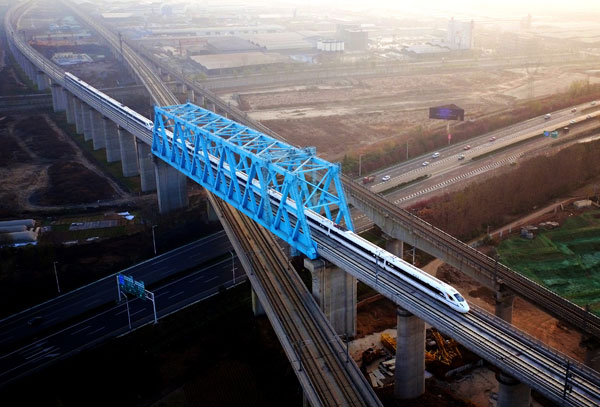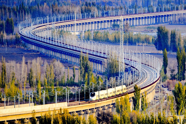 蘭新高鐵動車組列車在新疆哈密特大橋上行駛 (蔡增樂 攝)