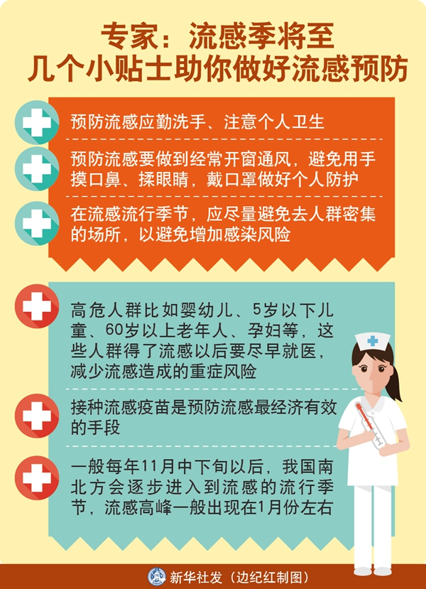 據(jù)專家介紹,一般每年11月中下旬以后,我國南北方會逐步進(jìn)入到流感的流行季節(jié),流感高峰一般出現(xiàn)在1月份左右。