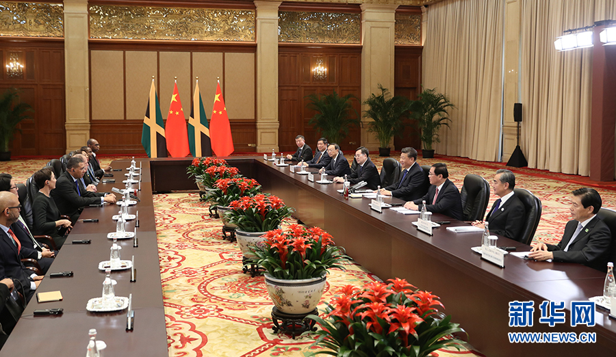 習(xí)近平強(qiáng)調(diào),中牙雙方要保持高層交往,加強(qiáng)治國理政經(jīng)驗(yàn)交流,加強(qiáng)發(fā)展戰(zhàn)略對(duì)接,以共建“一帶一路”為契機(jī),推動(dòng)合作增速提質(zhì),密切人文交流。中方支持中國企業(yè)赴牙買加投資,歡迎更多牙買加特色優(yōu)勢產(chǎn)品進(jìn)入中國。中方愿同牙方一道,致力于推動(dòng)中國同加勒比國家關(guān)系發(fā)展,并加強(qiáng)在國際和多邊領(lǐng)域合作,共同維護(hù)多邊主義和多邊貿(mào)易體制,捍衛(wèi)發(fā)展中國家共同利益。