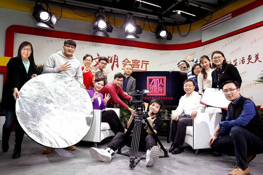 《40人對話40年》第40期節(jié)目殺青時(shí)部分工作人員合影。