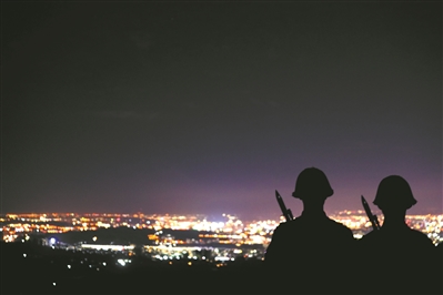夜深邃,山下遠(yuǎn)方,霓虹如星閃爍,輝映著山上忠誠守望的身影。劉 暢攝