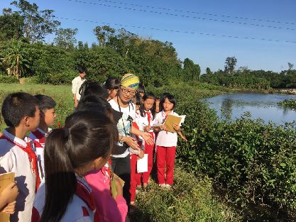 海南松鼠學(xué)堂創(chuàng)始人高高老師帶領(lǐng)海口七中的學(xué)生觀察濕地的生態(tài)環(huán)境