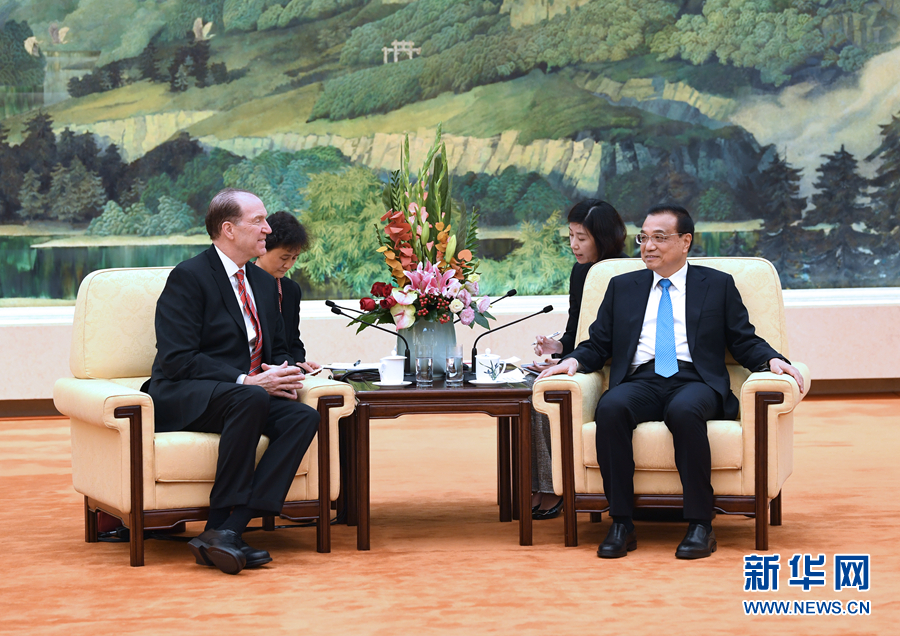 11月20日,國務(wù)院總理李克強在北京人民大會堂會見世界銀行行長馬爾帕斯。 新華社記者 饒愛民 攝