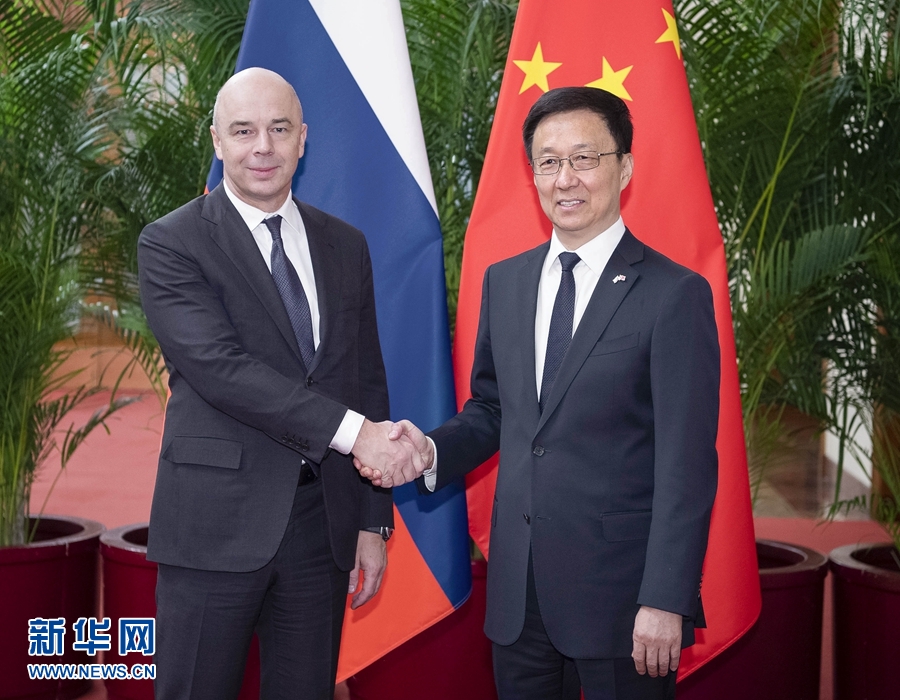 11月26日,中共中央政治局常委、國務院副總理、中俄投資合作委員會中方主席韓正在北京人民大會堂與俄羅斯第一副總理、委員會俄方主席西盧安諾夫共同主持中俄投資合作委員會第六次會議。新華社記者 李濤 攝