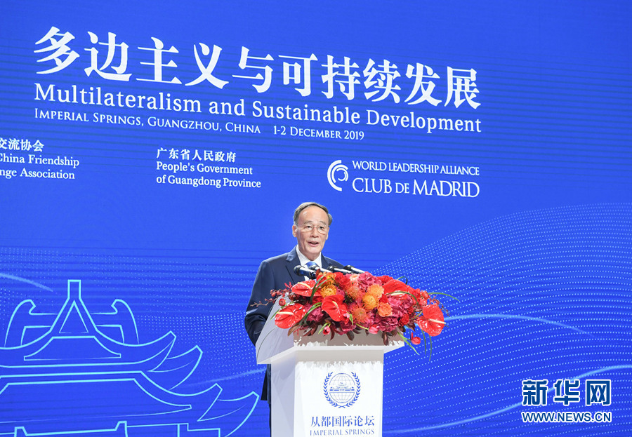 新華社廣州12月1日電(記者孫奕、徐弘毅)國(guó)家副主席王岐山1日在廣州出席“2019從都國(guó)際論壇”開幕式并致辭。