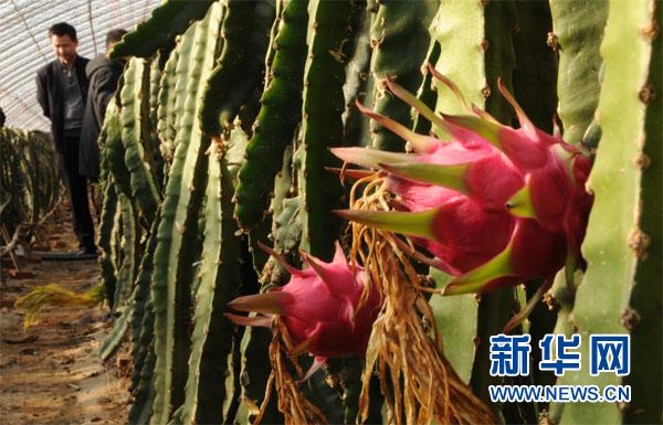 室外-5℃,位于河北省平泉市黃土梁子鎮(zhèn)的中國北方火龍果產(chǎn)業(yè)示范園大棚內(nèi)卻溫潤如春,鮮果飄香。新華網(wǎng) 張朝華攝