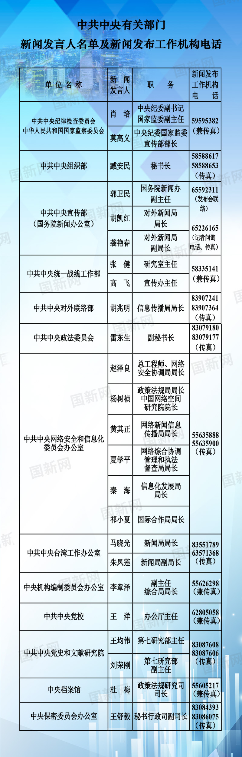 中央國家機(jī)關(guān)和地方2020年新聞發(fā)言人名錄發(fā)布