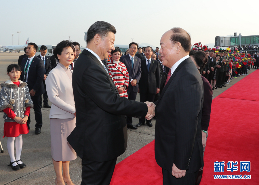 習(xí)近平是12月18日下午抵達(dá)澳門的。在澳門期間,習(xí)近平出席了慶祝澳門回歸祖國20周年大會暨澳門特別行政區(qū)第五屆政府就職典禮,以及澳門特別行政區(qū)政府歡迎晚宴和慶祝澳門回歸祖國20周年文藝晚會;分別會見了何厚鏵、崔世安、賀一誠,以及澳門特別行政區(qū)行政、立法、司法機(jī)關(guān)負(fù)責(zé)人,澳門特別行政區(qū)紀(jì)律部隊(duì)代表,澳門社會各界代表人士;看望了中央駐澳機(jī)構(gòu)和主要中資機(jī)構(gòu)負(fù)責(zé)人;檢閱了駐澳門部隊(duì);考察了澳門便民政務(wù)服務(wù)、基礎(chǔ)教育和中國與葡語國家經(jīng)貿(mào)合作項(xiàng)目,同澳門民眾廣泛接觸和交流。習(xí)近平還會見了前來參加慶?;顒拥南愀厶貏e行政區(qū)行政長官林鄭月娥。