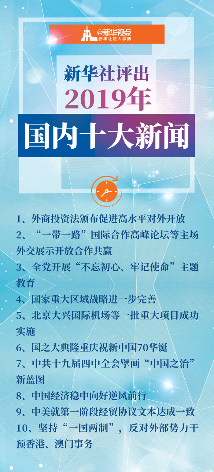 29日,新華社評(píng)出的2019年國(guó)內(nèi)十大新聞新鮮出爐。