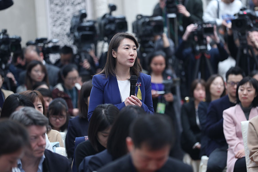 十三屆全國人大二次會議3月4日上午11時15分在人民大會堂新聞發(fā)布廳舉行新聞發(fā)布會,由大會發(fā)言人就大會議程和人大工作相關(guān)的問題回答中外記者提問。圖為鳳凰衛(wèi)視記者提問。新華網(wǎng)/中國政府網(wǎng) 陳杰 攝?