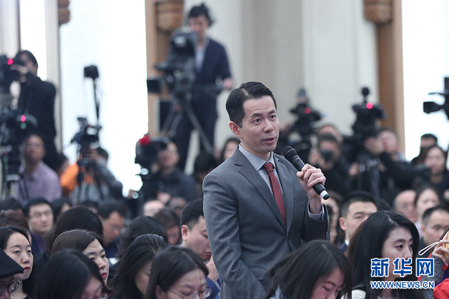 十三屆全國人大二次會議3月4日上午11時15分在人民大會堂新聞發(fā)布廳舉行新聞發(fā)布會,由大會發(fā)言人張業(yè)遂就大會議程和人大工作相關(guān)的問題回答中外記者提問。圖為美國有線電視新聞記者提問。新華網(wǎng)/中國政府網(wǎng) 陳杰 攝