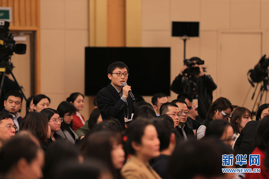 全國(guó)政協(xié)十三屆二次會(huì)議3月5日15:00在梅地亞中心多功能廳舉行記者會(huì),邀請(qǐng)5位全國(guó)政協(xié)委員就“打贏防范化解重大風(fēng)險(xiǎn)、精準(zhǔn)脫貧、污染防治三大攻堅(jiān)戰(zhàn)”回答記者提問。圖為法制日?qǐng)?bào)記者提問。新華網(wǎng)/中國(guó)政府網(wǎng) 劉廈 攝?