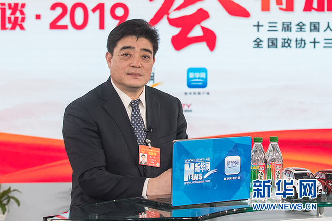 3月5日,全國人大代表、中國石油化工股份有限公司齊魯分公司總經(jīng)理韓峰做客新華網(wǎng)2019全國兩會特別報(bào)道。新華網(wǎng) 郭小天 攝