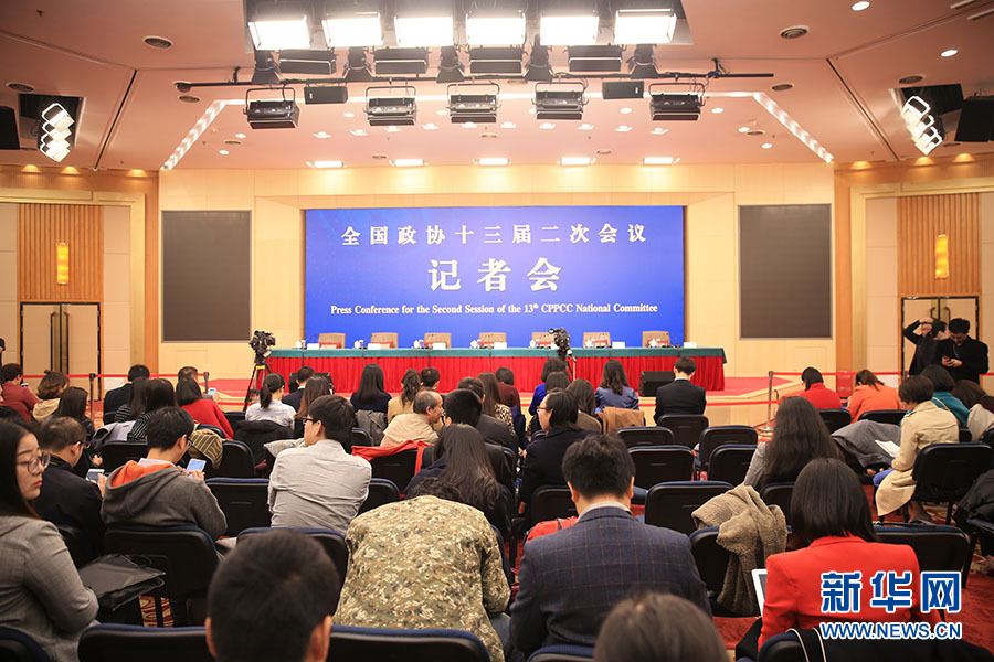 全國政協(xié)十三屆二次會(huì)議3月5日15:00在梅地亞中心多功能廳舉行記者會(huì),邀請(qǐng)5位全國政協(xié)委員就“打贏防范化解重大風(fēng)險(xiǎn)、精準(zhǔn)脫貧、污染防治三大攻堅(jiān)戰(zhàn)”回答記者提問。圖為記者會(huì)現(xiàn)場。新華網(wǎng)/中國政府網(wǎng) 陳杰 攝