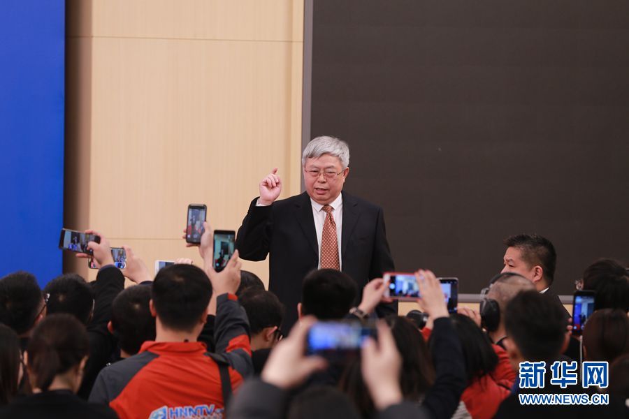 十三屆全國人大二次會議新聞中心于3月7日10時50分在梅地亞中心新聞發(fā)布廳舉行記者會,邀請國務(wù)院扶貧開發(fā)領(lǐng)導(dǎo)小組辦公室主任劉永富就“攻堅克難——堅決打贏脫貧攻堅戰(zhàn)”相關(guān)問題回答中外記者提問。圖為記者會結(jié)束后劉永富與記者們交流。新華網(wǎng)?劉廈 攝