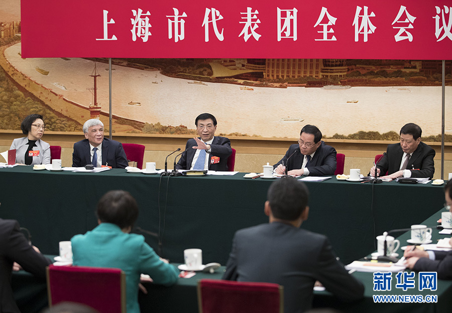 3月7日,中共中央政治局常委、中央書記處書記王滬寧參加十三屆全國人大二次會議上海代表團(tuán)的審議。 新華社記者 王曄 攝