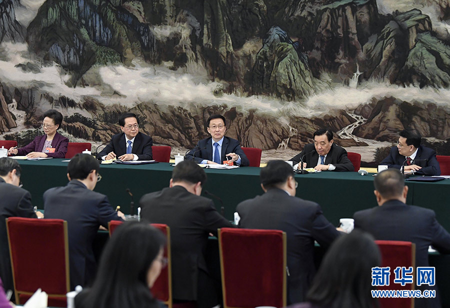 3月7日,中共中央政治局常委、國務(wù)院副總理韓正參加十三屆全國人大二次會議浙江代表團(tuán)的審議。 新華社記者 高潔 攝