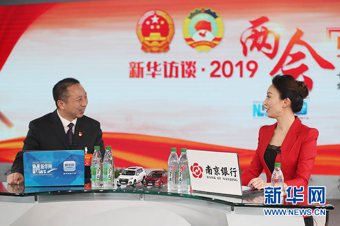 全國(guó)人大代表、東風(fēng)商用車(chē)有限公司車(chē)輛工廠(chǎng)調(diào)檢一車(chē)間“王濤班”班長(zhǎng)王建清做客新華網(wǎng)2019全國(guó)兩會(huì)特別報(bào)道。新華網(wǎng)?郭小天 攝