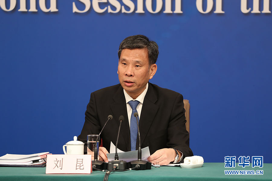 十三屆全國(guó)人大二次會(huì)議新聞中心3月7日9時(shí)在梅地亞中心新聞發(fā)布廳舉行記者會(huì),邀請(qǐng)財(cái)政部部長(zhǎng)劉昆,副部長(zhǎng)程麗華、劉偉就“財(cái)稅改革和財(cái)政工作”相關(guān)問題回答中外記者提問。圖為劉昆回答記者提問。新華網(wǎng)/中國(guó)政府網(wǎng) 陳杰 攝