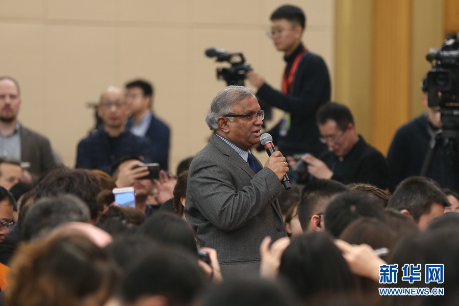 十三屆全國人大二次會議新聞中心3月8日10時(shí)在梅地亞中心新聞發(fā)布廳舉行記者會,邀請國務(wù)委員兼外交部長王毅就“中國外交政策和對外關(guān)系”相關(guān)問題回答中外記者提問。圖為印度報(bào)業(yè)托拉斯記者提問。新華網(wǎng)/中國政府網(wǎng) 劉廈 攝