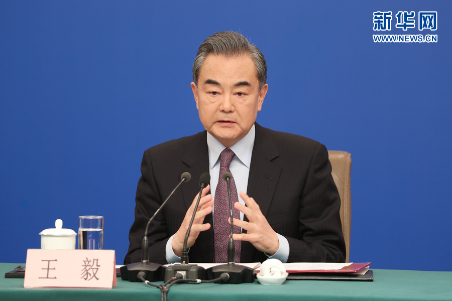 十三屆全國人大二次會議新聞中心3月8日10時在梅地亞中心新聞發(fā)布廳舉行記者會,邀請國務(wù)委員兼外交部長王毅就“中國外交政策和對外關(guān)系”相關(guān)問題回答中外記者提問。圖為王毅回答記者提問。新華網(wǎng)/中國政府網(wǎng)?陳杰 攝