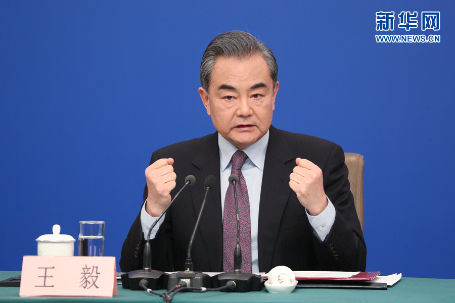 十三屆全國人大二次會議新聞中心3月8日10時在梅地亞中心新聞發(fā)布廳舉行記者會,邀請國務(wù)委員兼外交部長王毅就“中國外交政策和對外關(guān)系”相關(guān)問題回答中外記者提問。圖為王毅回答記者提問。新華網(wǎng)/中國政府網(wǎng) 陳杰 攝