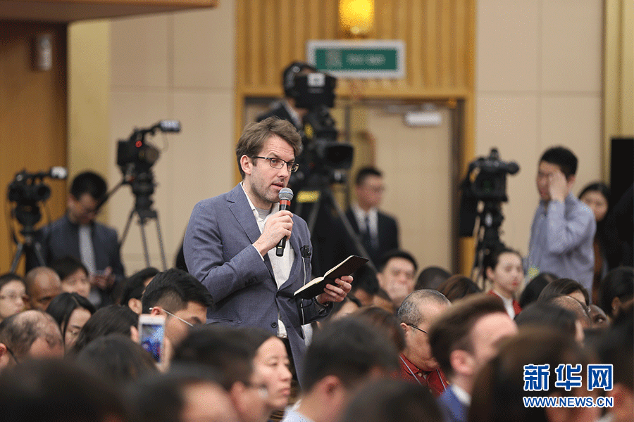 十三屆全國人大二次會議新聞中心3月9日(星期六)10時30分在梅地亞中心新聞發(fā)布廳舉行記者會,邀請商務(wù)部部長鐘山、副部長兼國際貿(mào)易談判副代表王受文、副部長錢克明就“促進形成強大國內(nèi)市場 推動全方位對外開放”相關(guān)問題回答中外記者提問。圖為彭博新聞社記者提問。新華網(wǎng)/中國政府網(wǎng) 劉廈 攝