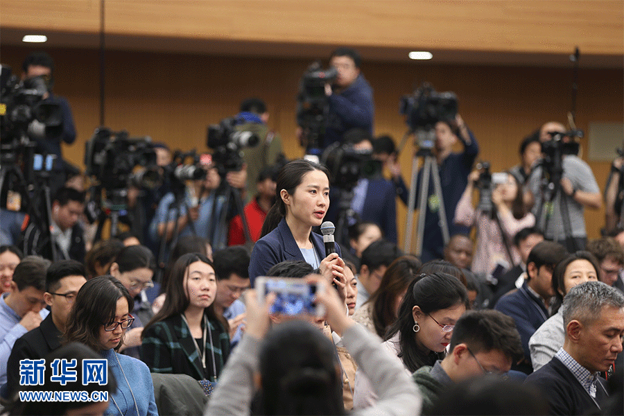 十三屆全國人大二次會議新聞中心3月9日(星期六)10時30分在梅地亞中心新聞發(fā)布廳舉行記者會,邀請商務(wù)部部長鐘山、副部長兼國際貿(mào)易談判副代表王受文、副部長錢克明就“促進形成強大國內(nèi)市場 推動全方位對外開放”相關(guān)問題回答中外記者提問。圖為中央廣播電視總臺央視記者提問。新華網(wǎng)/中國政府網(wǎng) 劉廈 攝